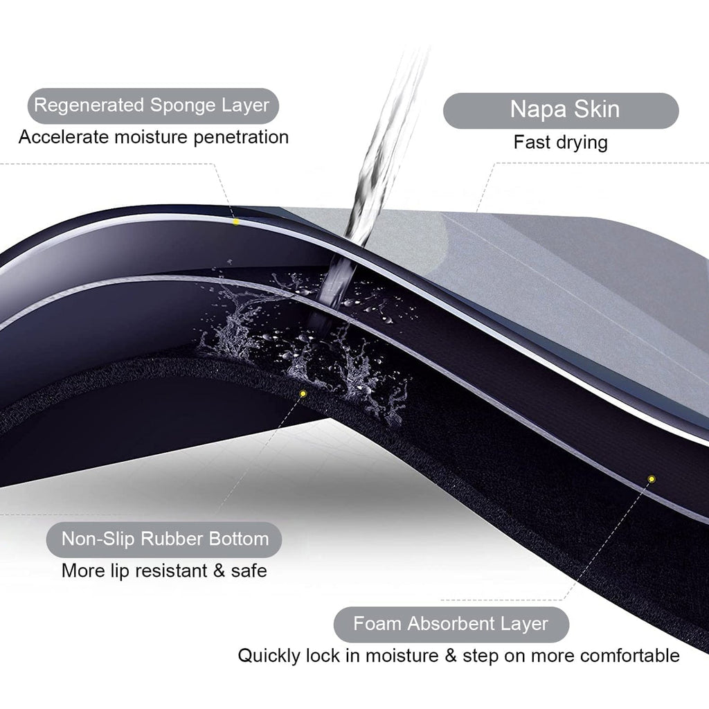 STRONG NON-SLIP :- Our non-slip floor mats are made of rubber + tech velvet, which dries faster than ordinary floor mats. Non-slip rubber bottom firm grip for increased safety and stability. Super absorbent floor mat. Absorbent bath mats dry quickly.