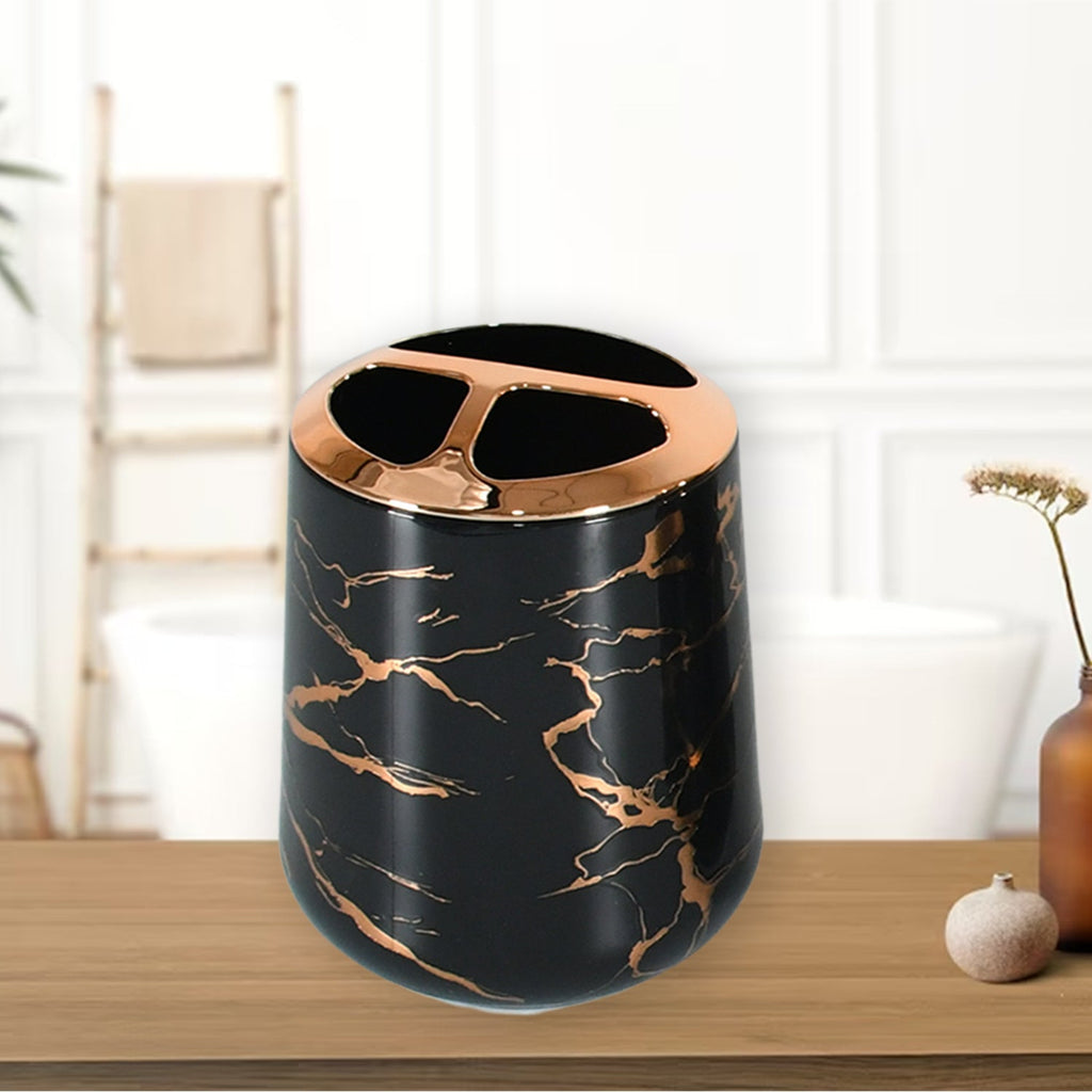 • Black tumbler has a matte finish and an abstract gold patterned surface, making it ideal for bringing a monochromatic balance to vibrant corners.